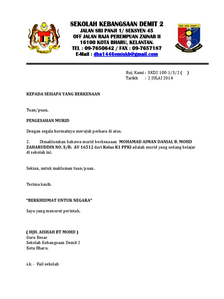 Surat Pengesahan Pelajar In English Letter 7saudara Com
